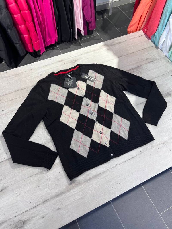 Maglione con bottoni 100% Puro Cashmere Donna. Apt.9. Taglia XL. Maglione morbidissimo e molto caldo con fantasia rombi. Misure: Spalle 41cm, sotto ascelle 53cm, lunghezza 63cm