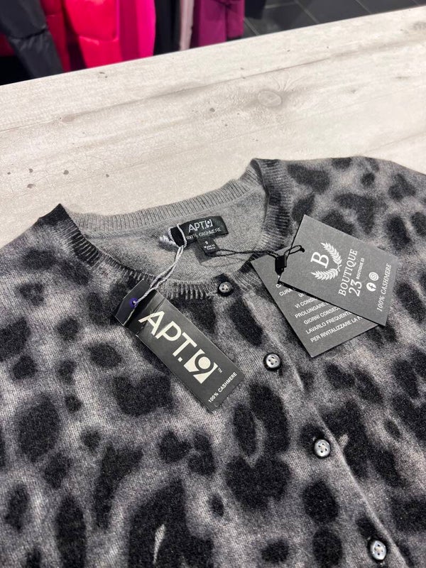 Maglione con bottoni 100% Puro Cashmere Donna. Apt.9. Taglia S. Maglione morbidissimo e molto caldo con fantasia maculato. Misure: Spalle 40cm, sotto ascelle 46,5cm, lunghezza 59cm
