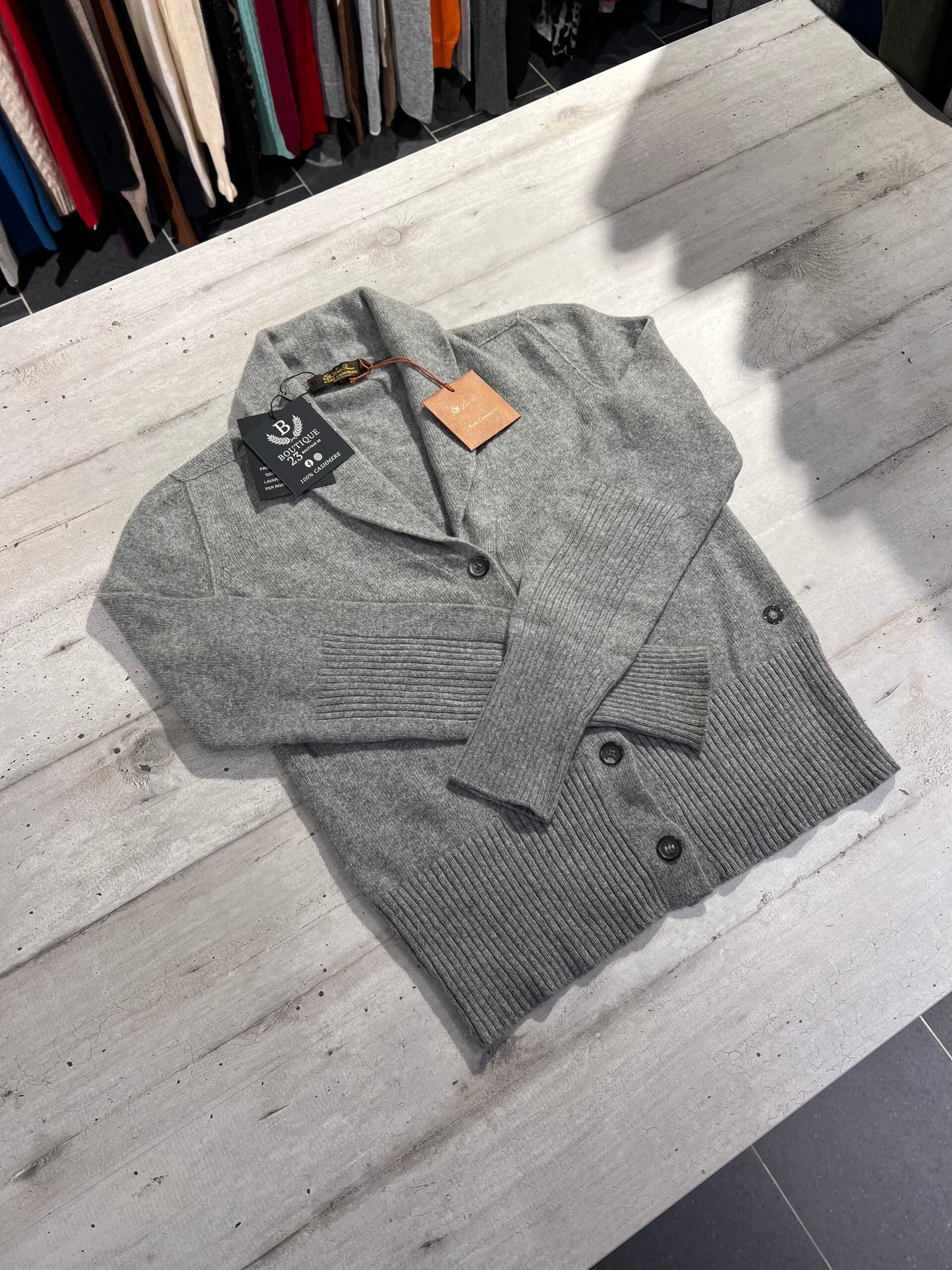 Maglione con bottoni 100% Puro Cashmere Donna. Loro Piana. Taglia IT40. Made in Italy. Maglione di una morbidezza unica, una nuvola sulla pelle, bellissimo, molto caldo e molto elegante, bottoni con il nome del brand. Misure: Spalle 37,5cm, sotto ascelle 47cm, lunghezza 58cm