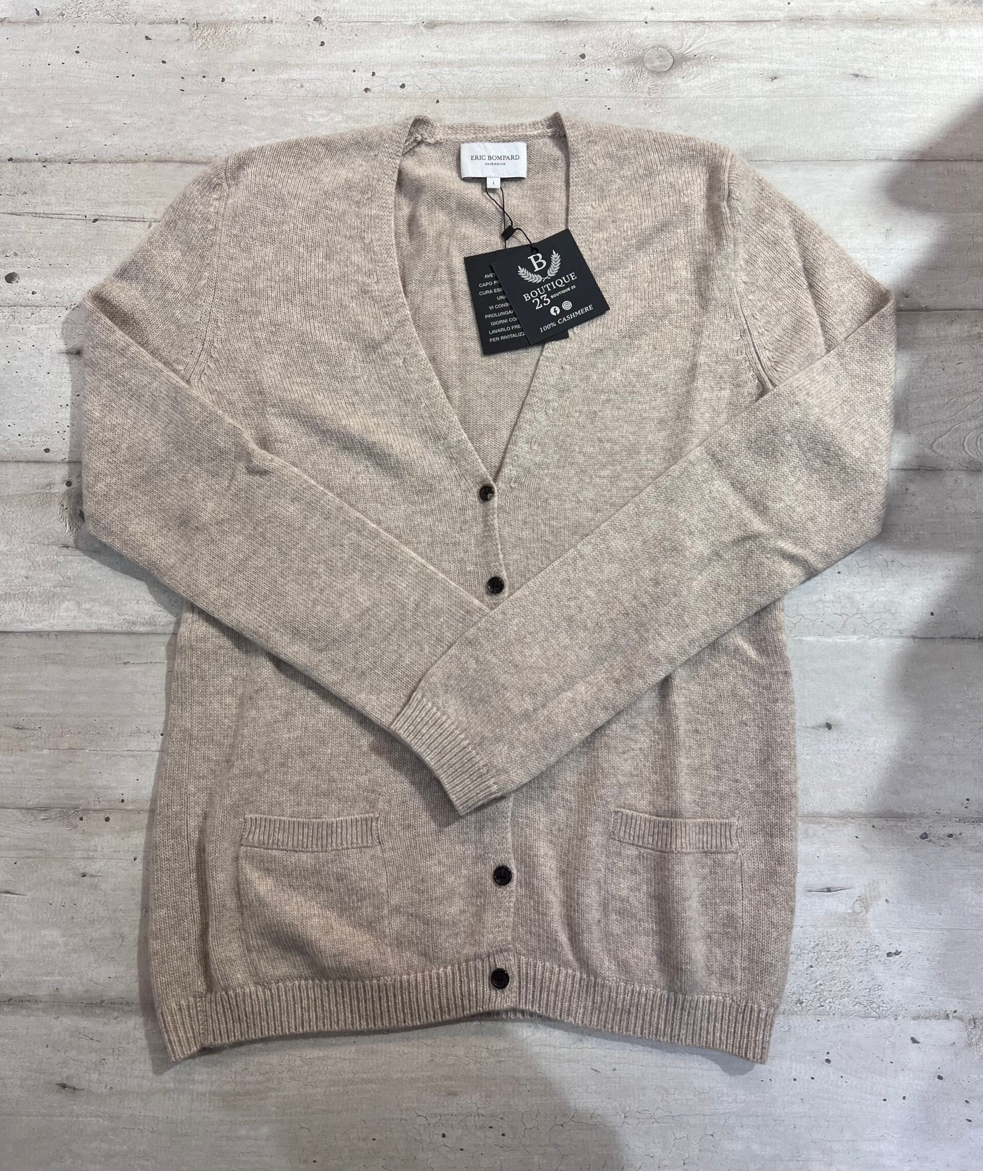 Maglione con bottoni 100% Puro Cashmere Donna. Eric Bompard. Taglia L. Maglione di una morbidezza unica, pesante e molto caldo con tasche frontali. Misure: Spalle 39,5cm, sotto ascelle 48cm, lunghezza 67cm