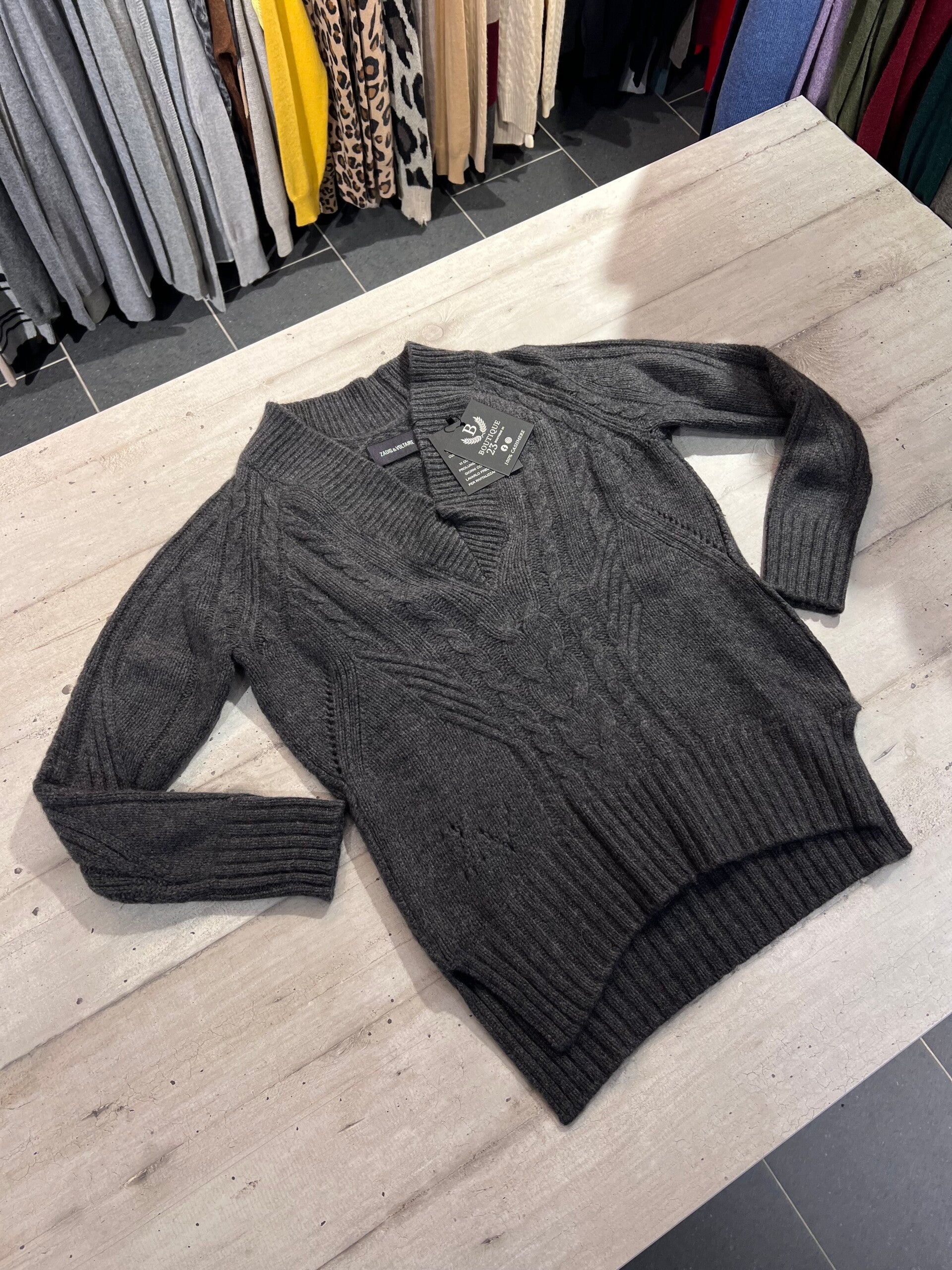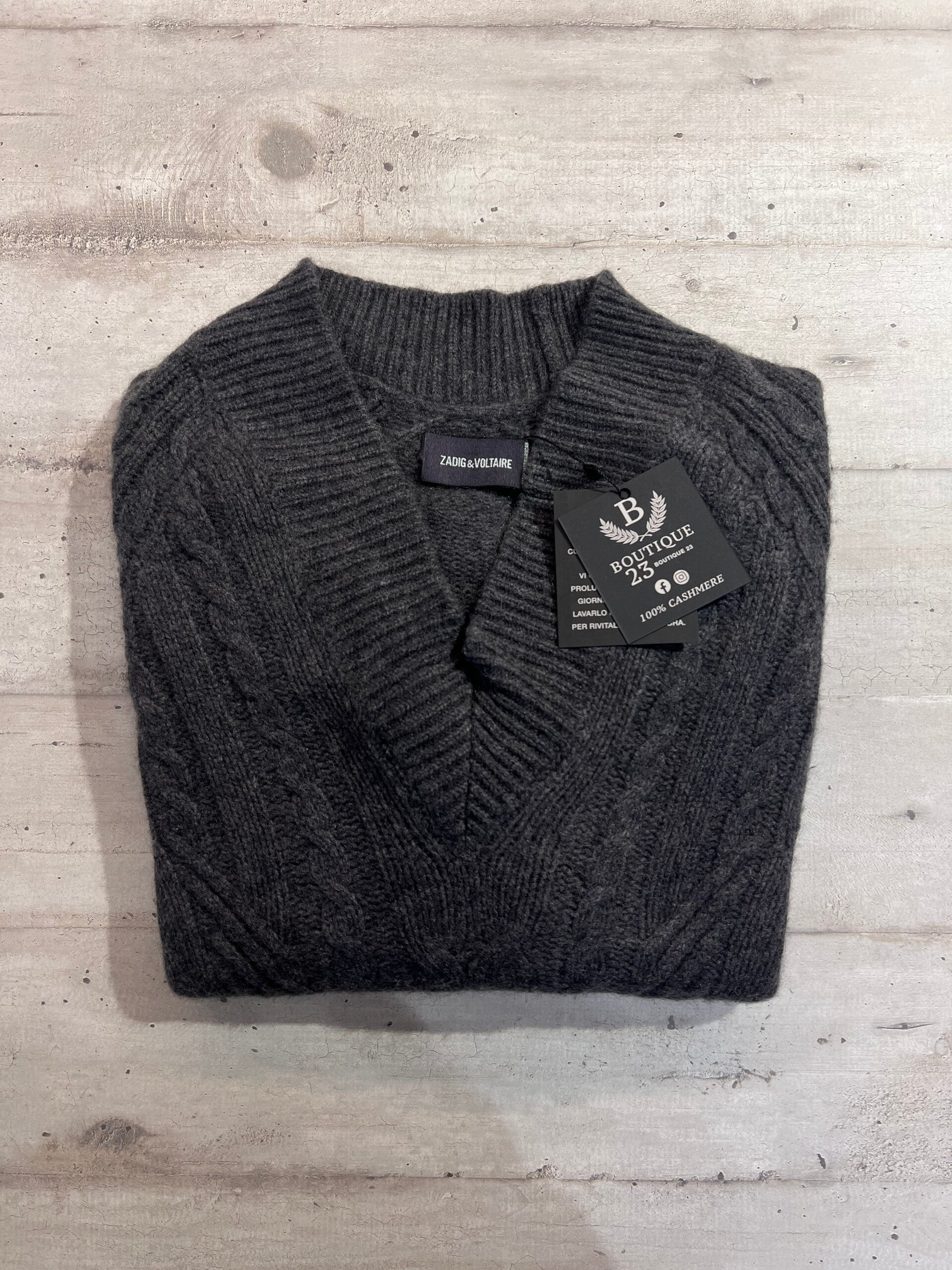 Maglione 100% Puro Cashmere Donna. Zadig & Voltaire. Taglia XS. Maglione di una morbidezza unica, veramente molto molto pesante, molto spesso e molto caldo con motivo a trecce su alcune parti del maglione. Misure: Sotto ascelle 51,5cm, lunghezza anteriore 61cm, posteriore 66cm