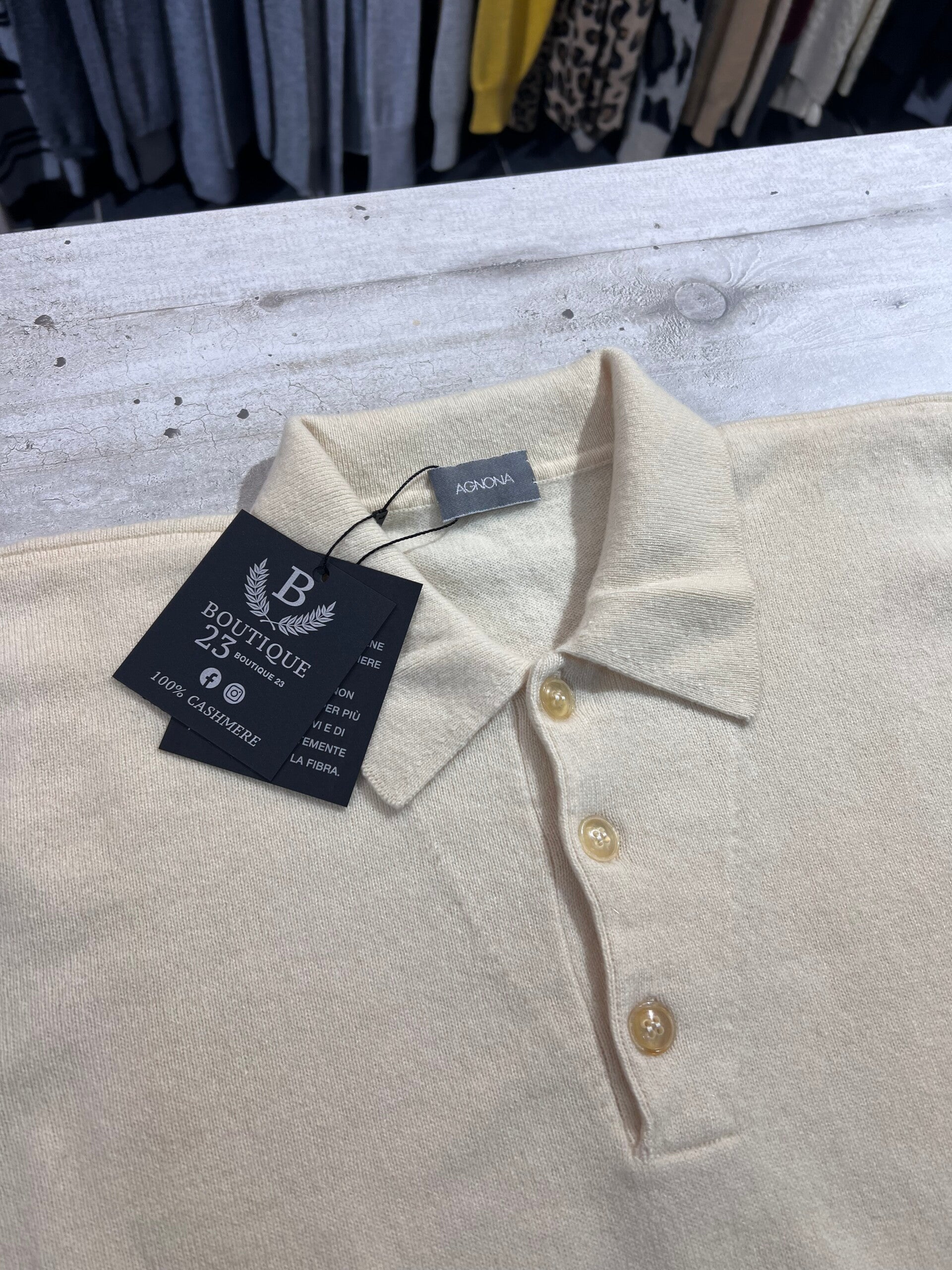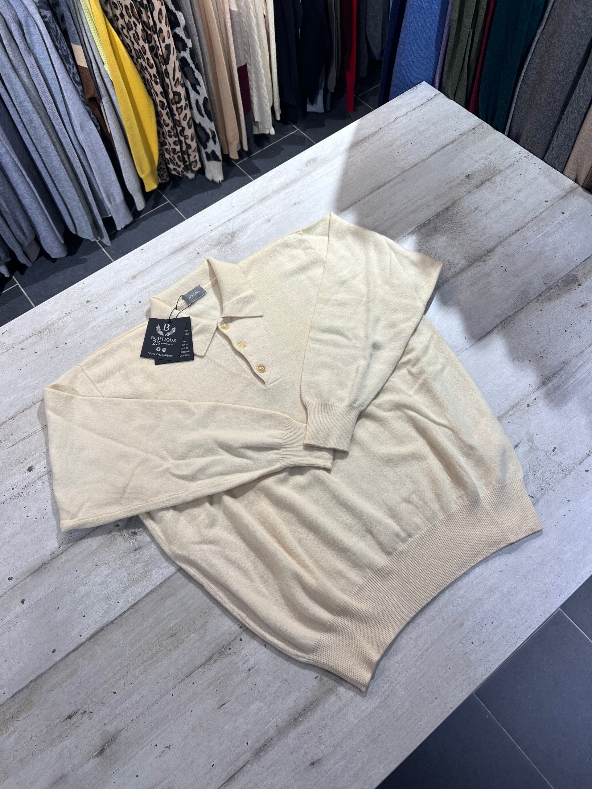 Maglione con colletto 100% Puro Cashmere Uomo. Agnona. Taglia IT50. Made in Italy. Maglione di una morbidezza unica, una nuvola sulla pelle, pesante, spesso, molto caldo e molto elegante. Misure: Spalle 48cm, sotto ascelle 59cm, lunghezza 64,5cm