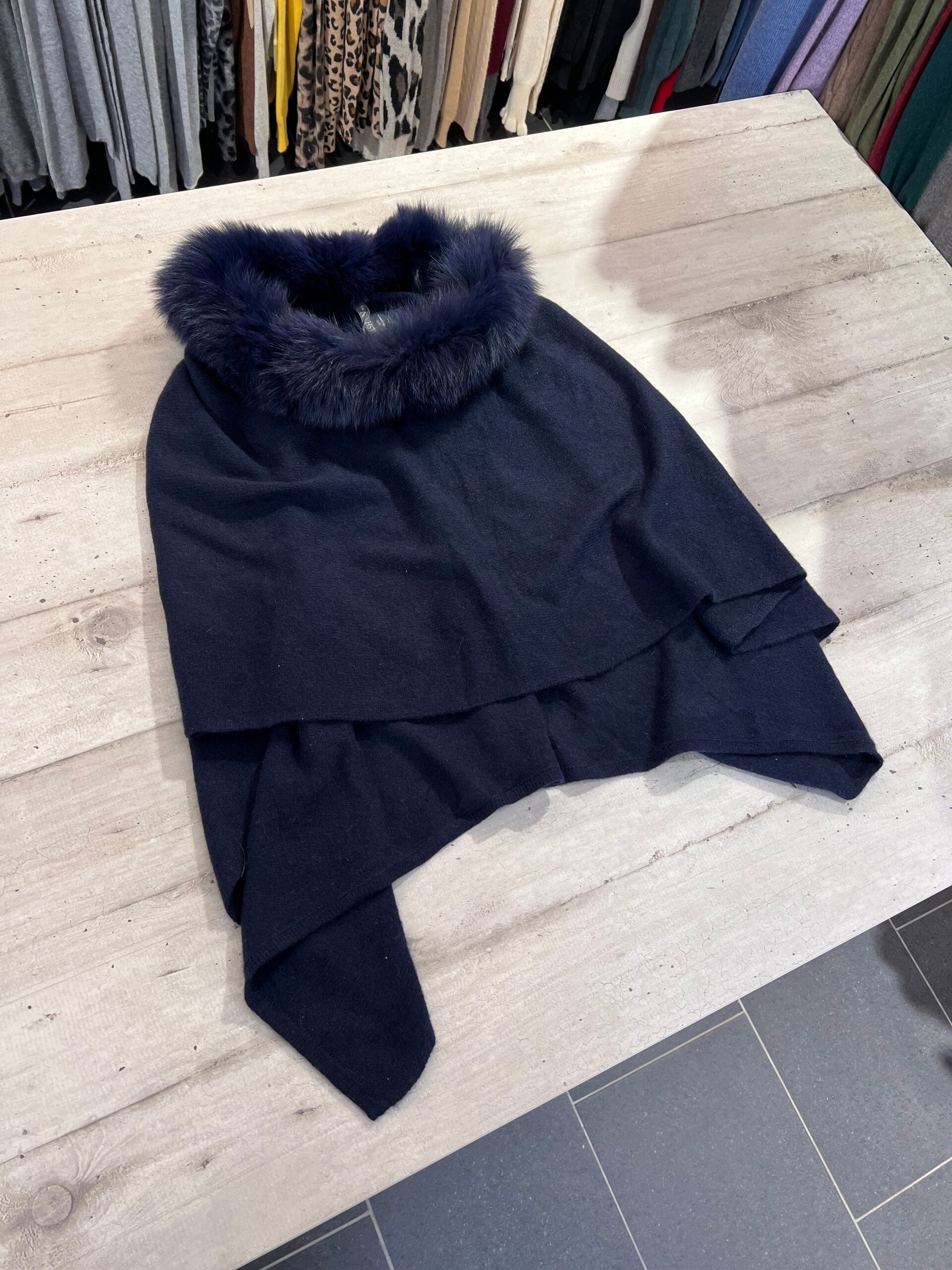 Mantella 100% Puro Cashmere Donna. Alashan Cashmere. Taglia Unica. Pelliccia di Vera Volpe Cinese. Mantella di una morbidezza unica, sia la parte in maglia sia la parte di pelliccia, veramente morbidissima, bellissima, elegante e molto calda. Misure: Larghezza 109cm, Lunghezza 62cm