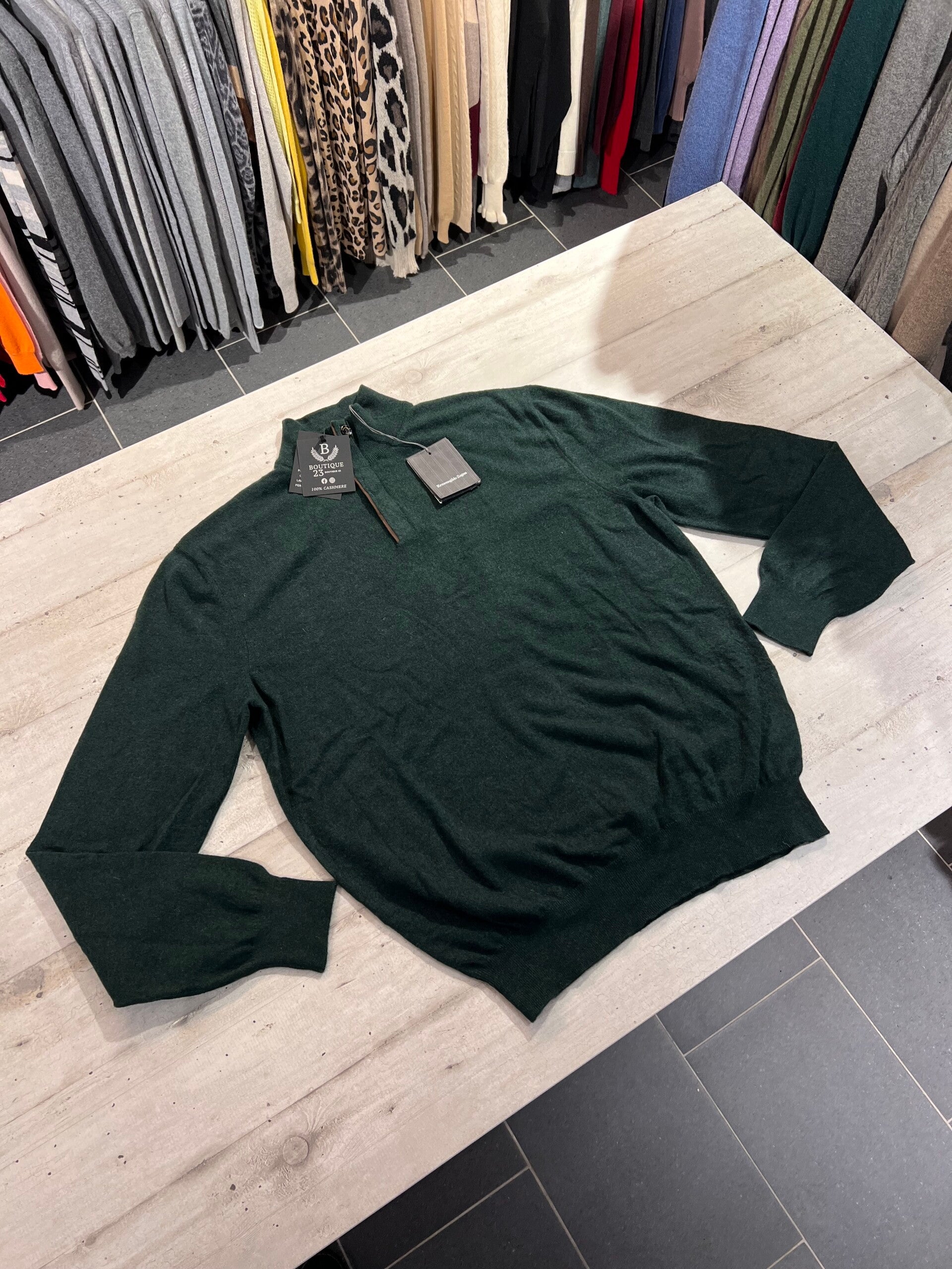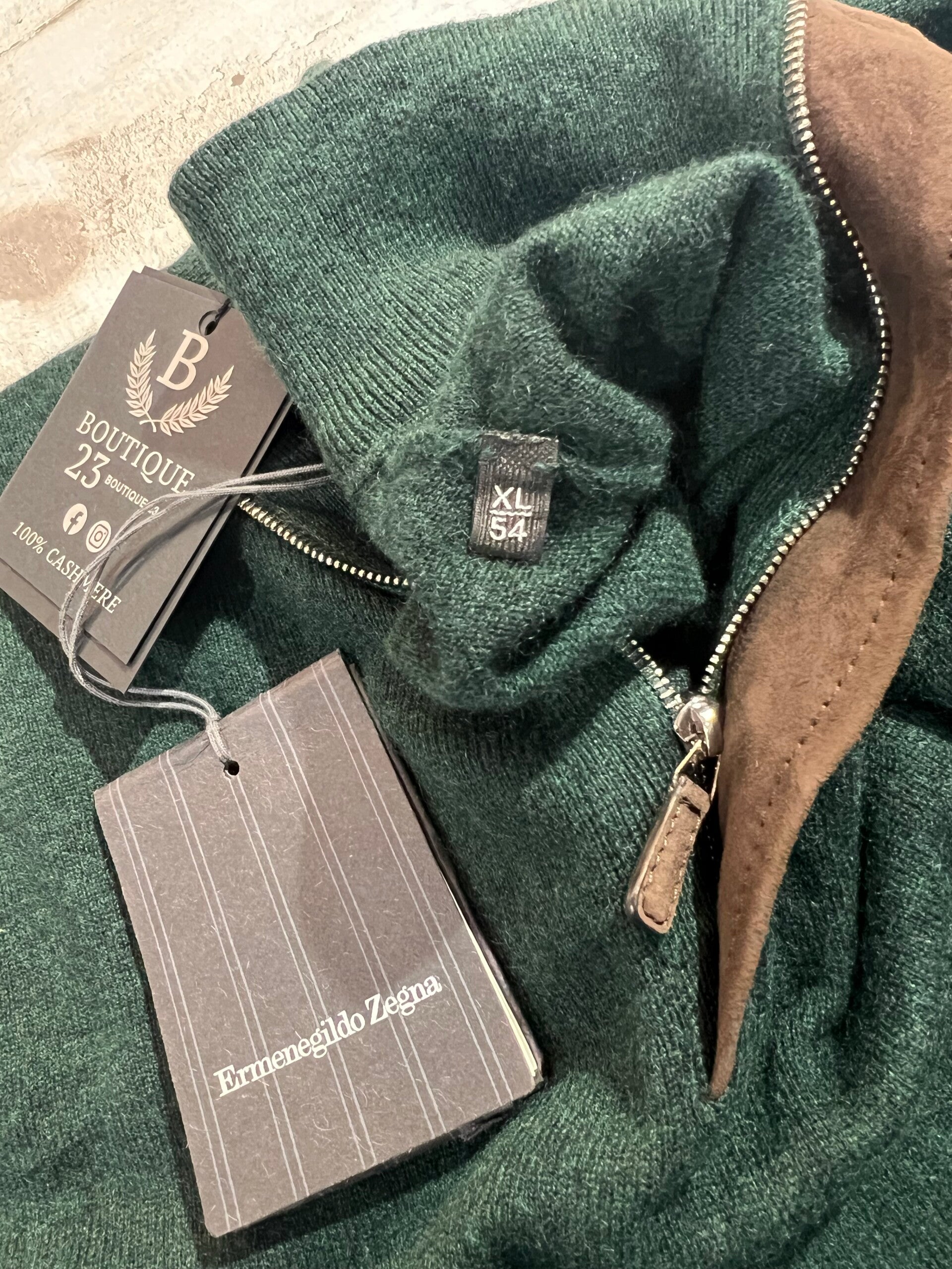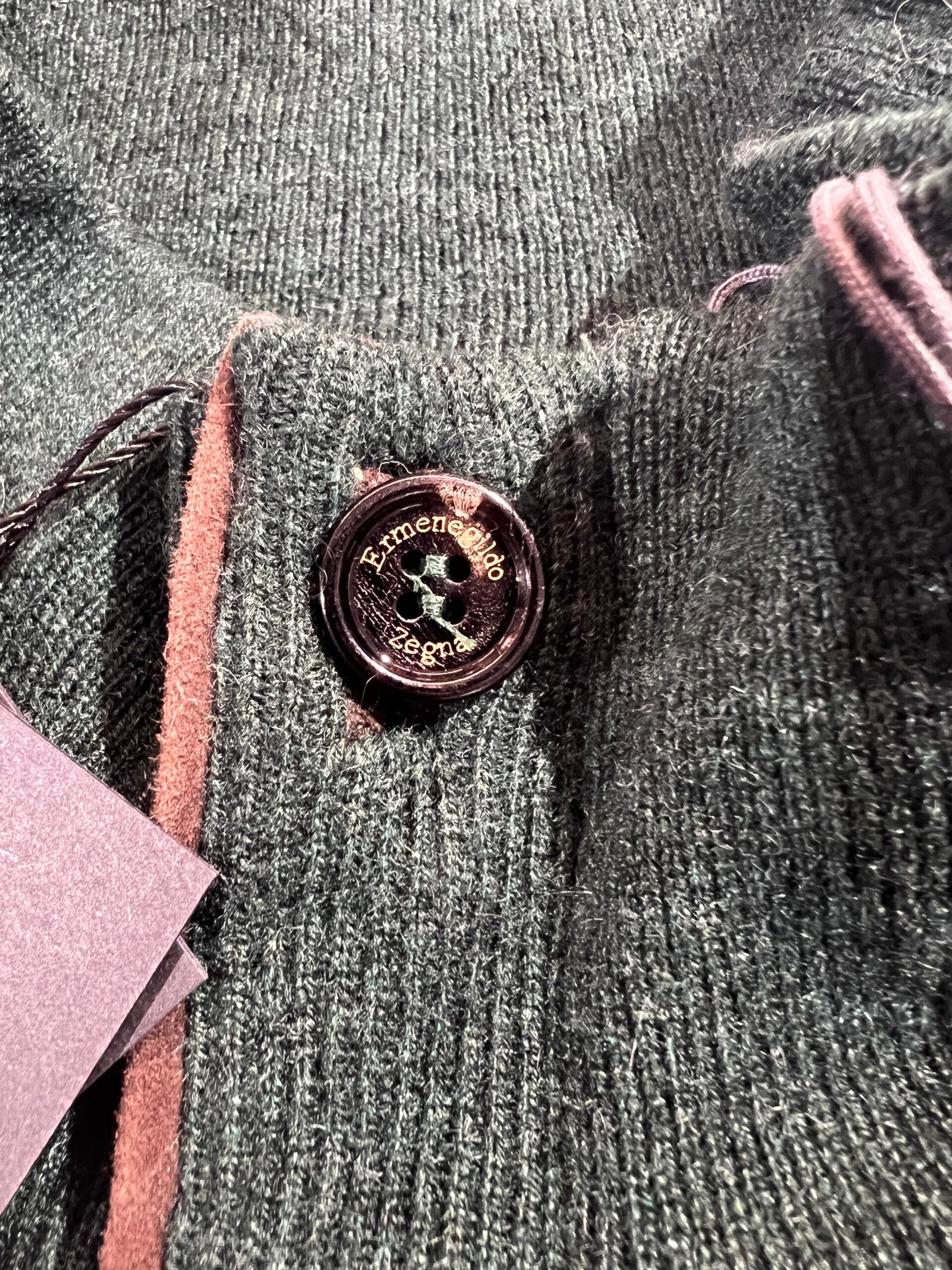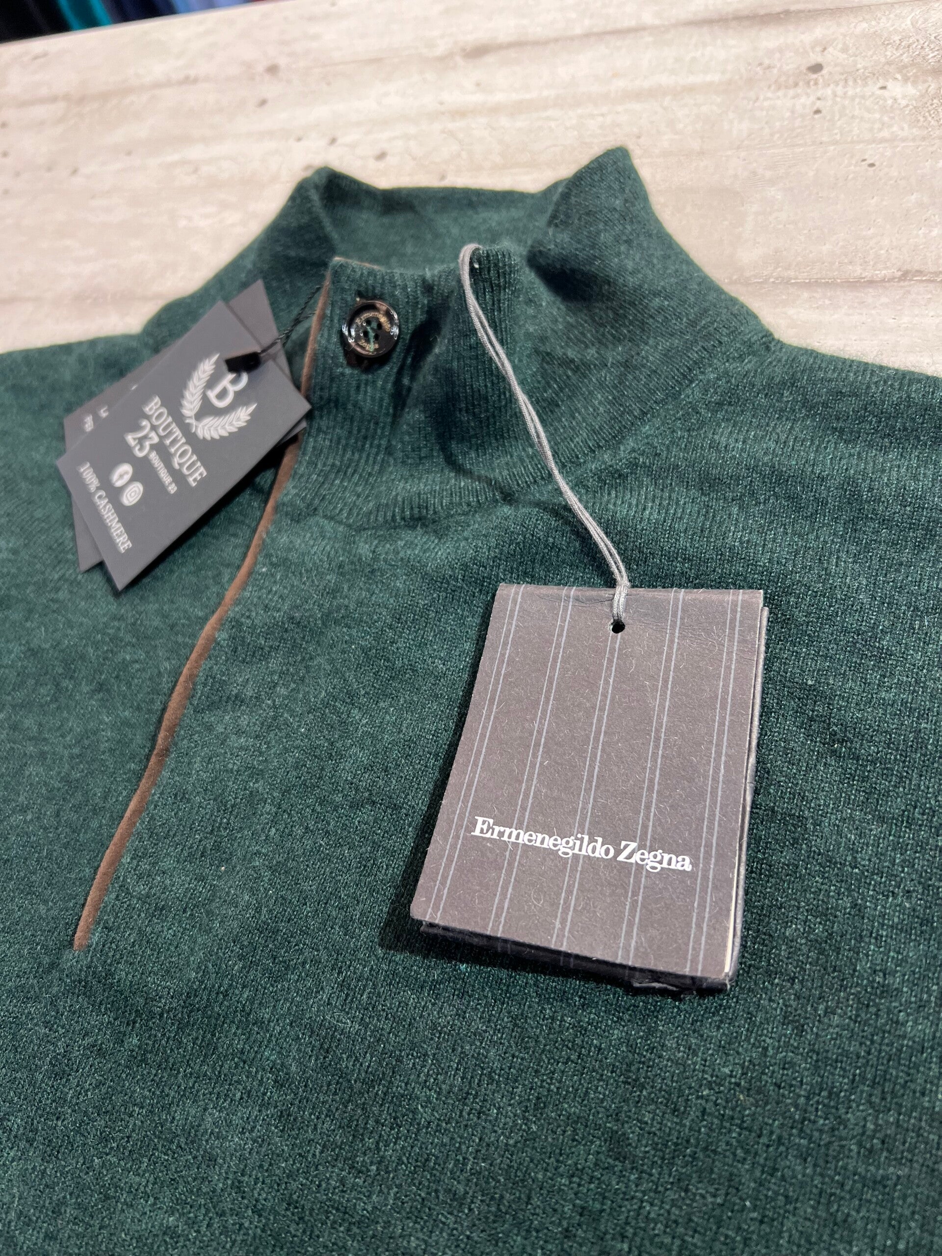 Maglione con zip 100% Puro Cashmere Uomo. Ermenegildo Zegna. Taglia IT54. Made in Italy. Maglione di una morbidezza unica, caldo, bellissimo e molto elegante con bottone firmato del brand. Misure: Spalle 50,5cm, sotto ascelle 60cm, lunghezza 74cm