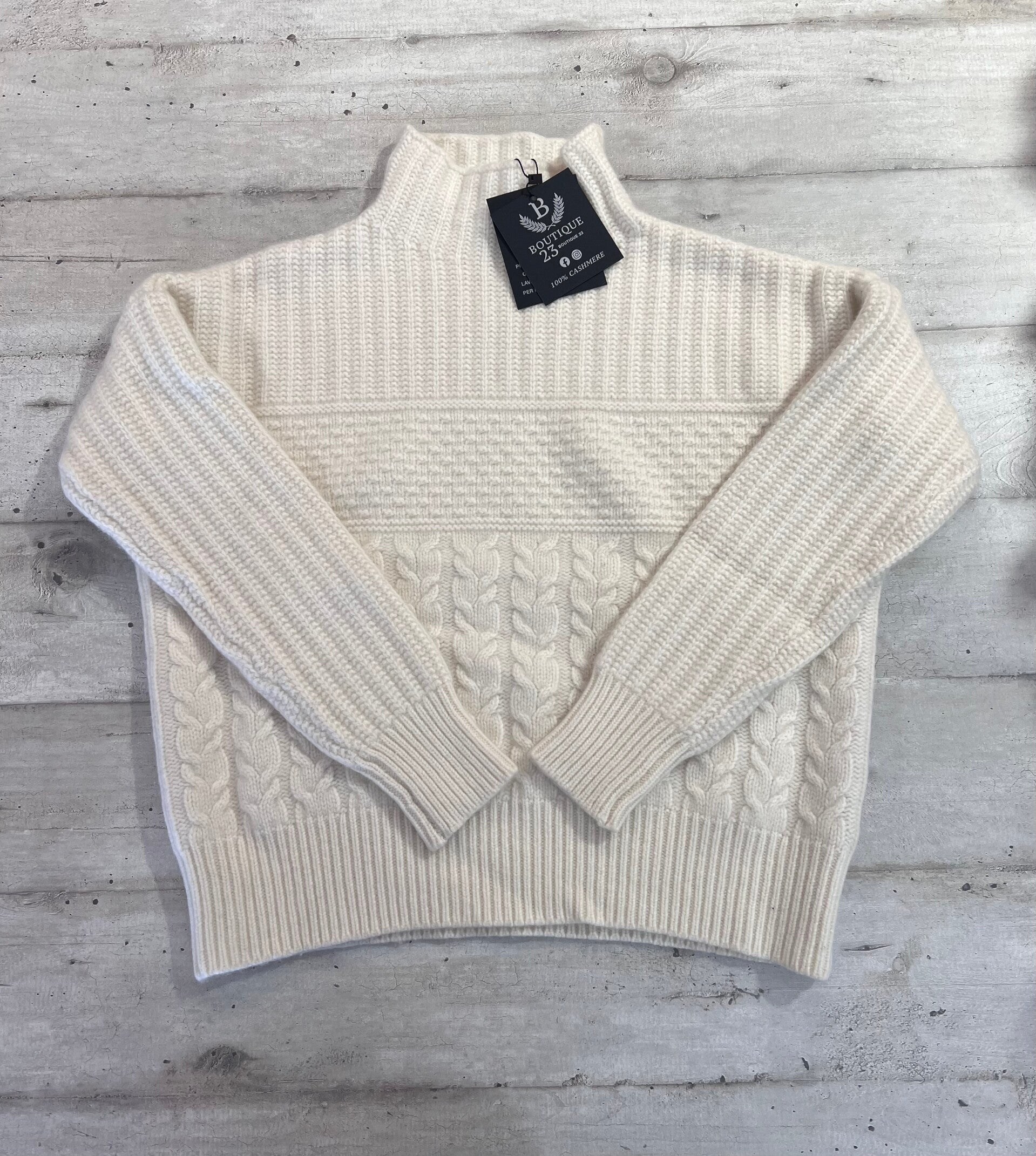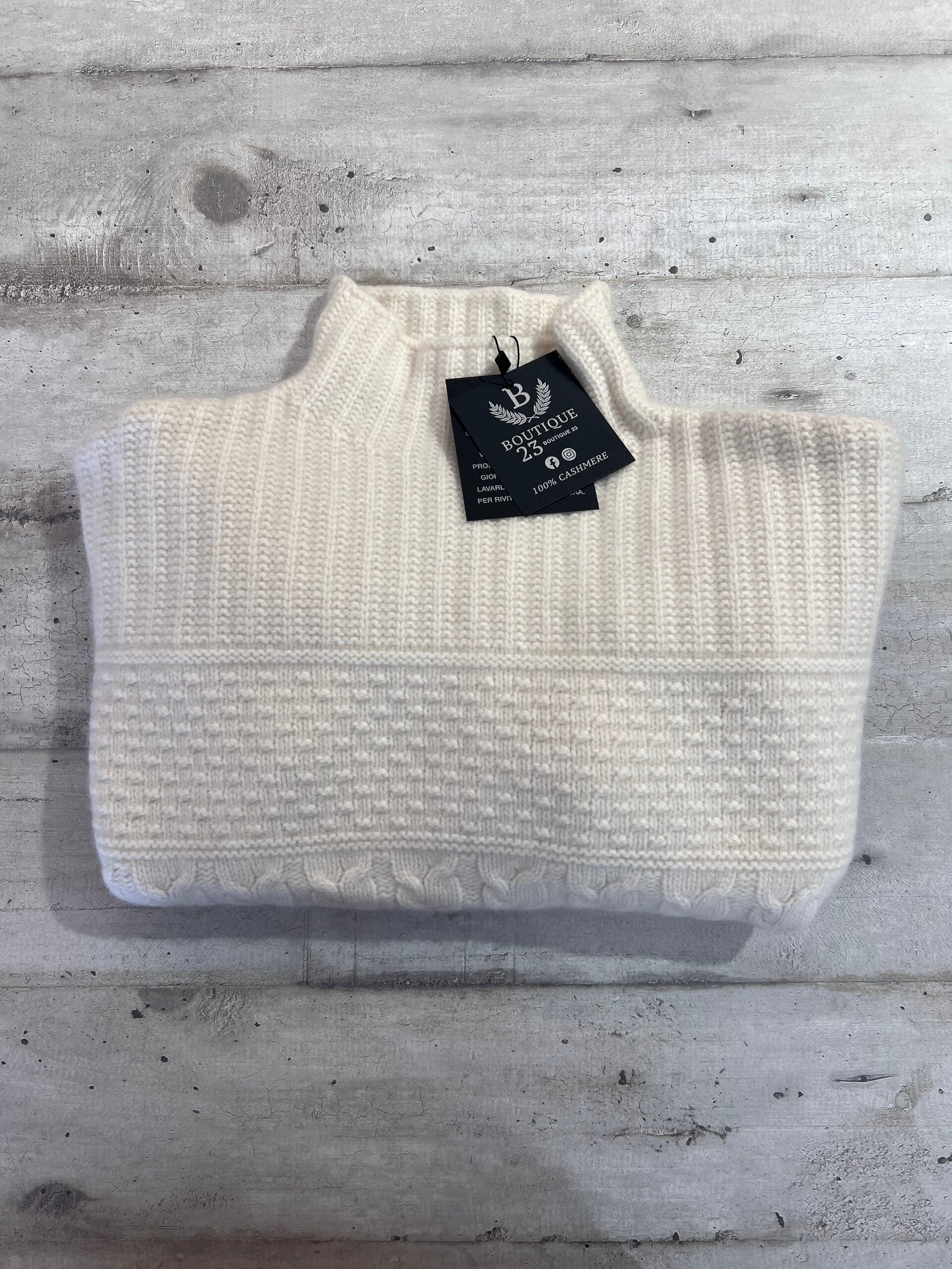 Maglione accollato 100% Puro Cashmere Donna. The Mercer N.Y.. Maglione di una morbidezza unica, molto pesante, spesso e molto caldo con metà motivo a trecce. Misure: Sotto ascelle 54,5cm, lunghezza 51cm