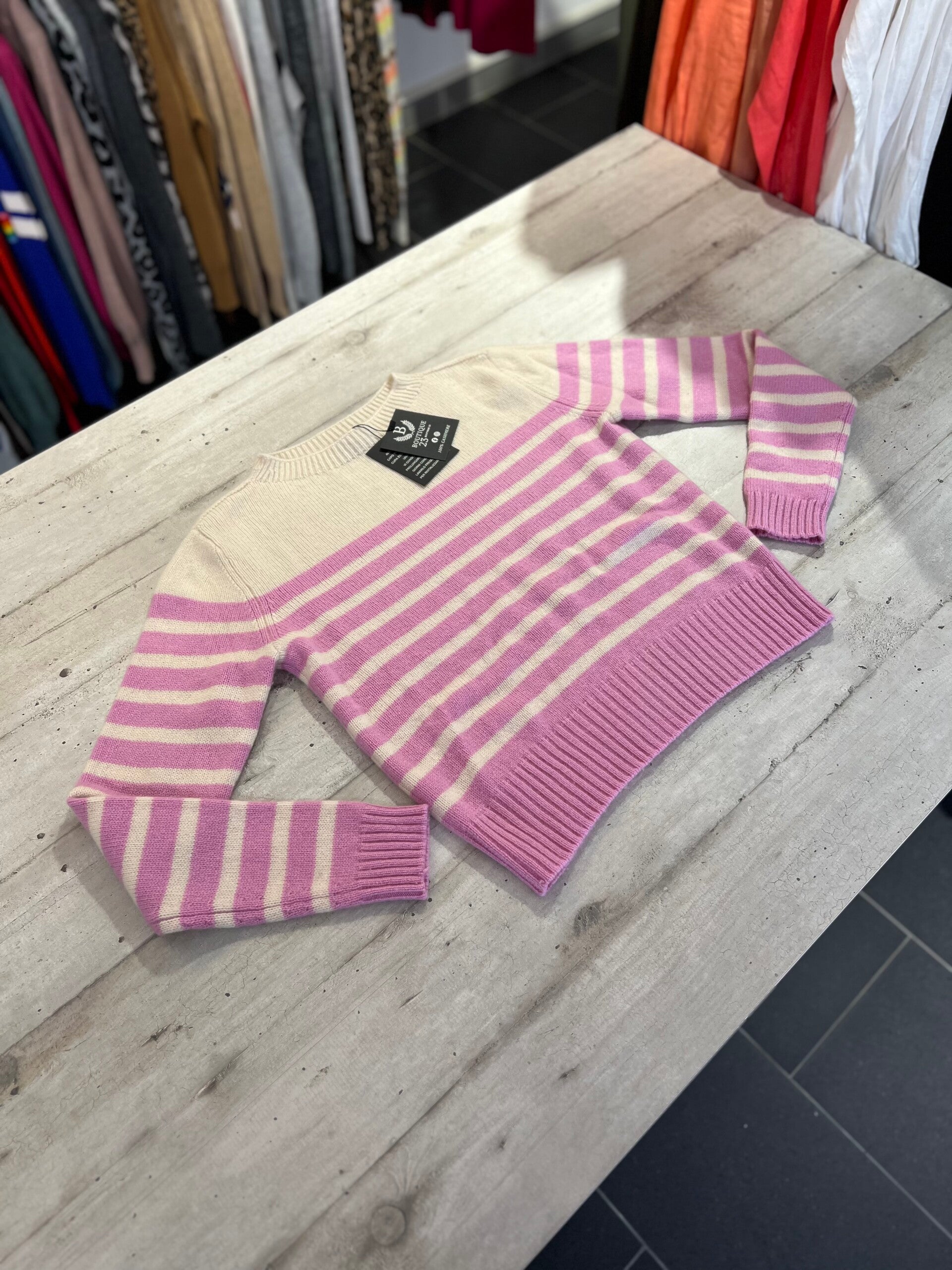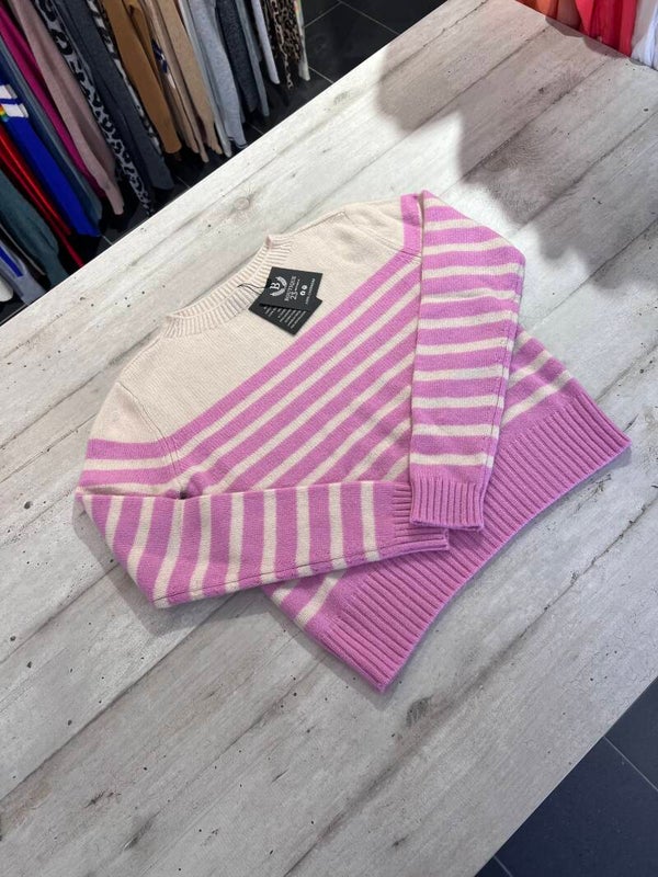Maglione 100% Puro Cashmere Donna. Eric Bompard. Taglia L. Maglione morbidissimo, spesso e molto caldo con fantasia a righe. Misure: Spalle 42cm, sotto ascelle 50,5cm, lunghezza 53,5cm