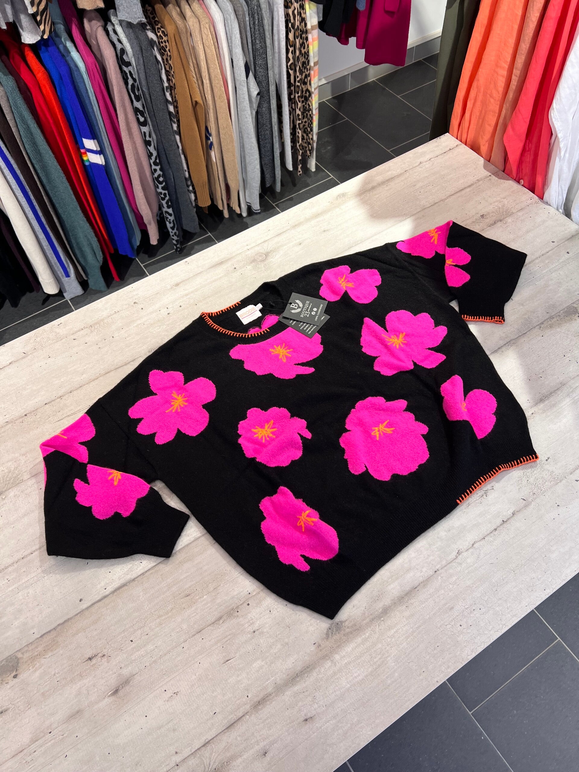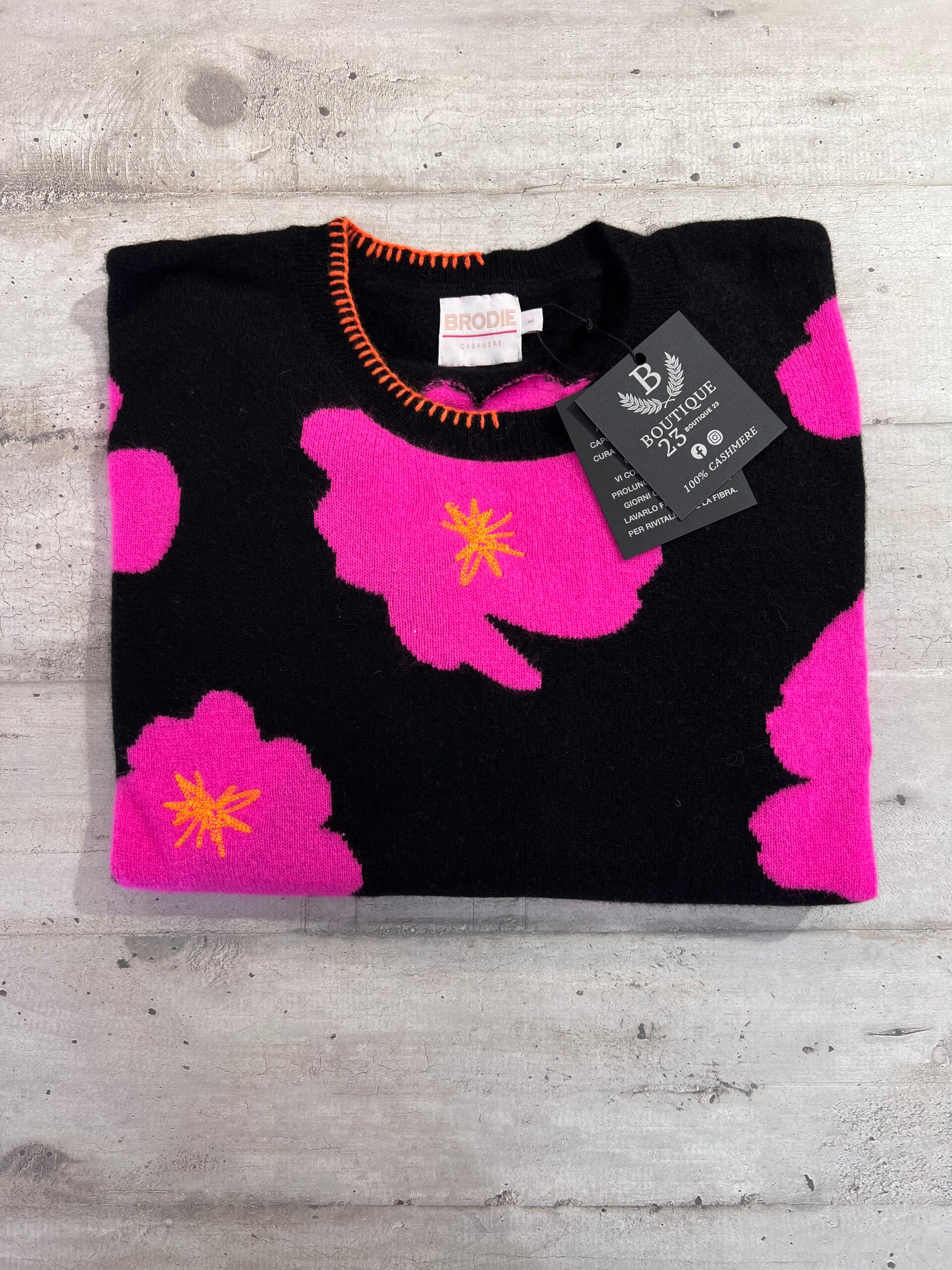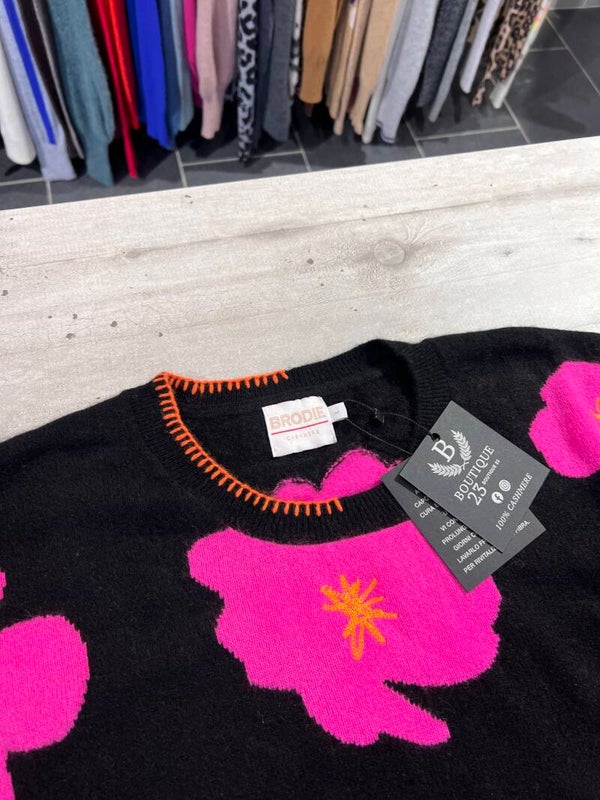 Maglione 100% Puro Cashmere Donna. Brodie. Taglia L. Maglione morbidissimo e molto caldo con fantasia a fiori. Misure: Sotto ascelle 65cm, lunghezza 59,5cm